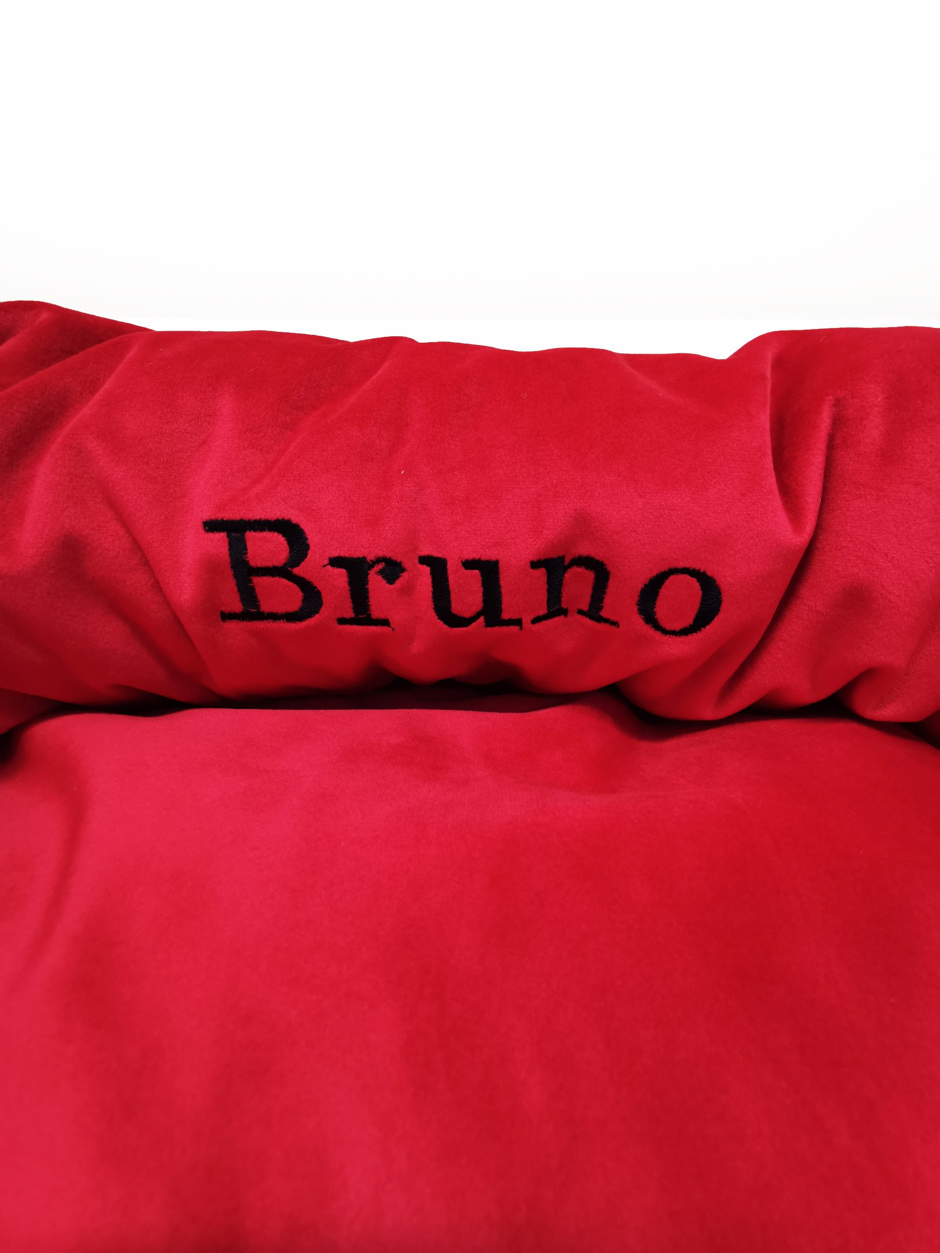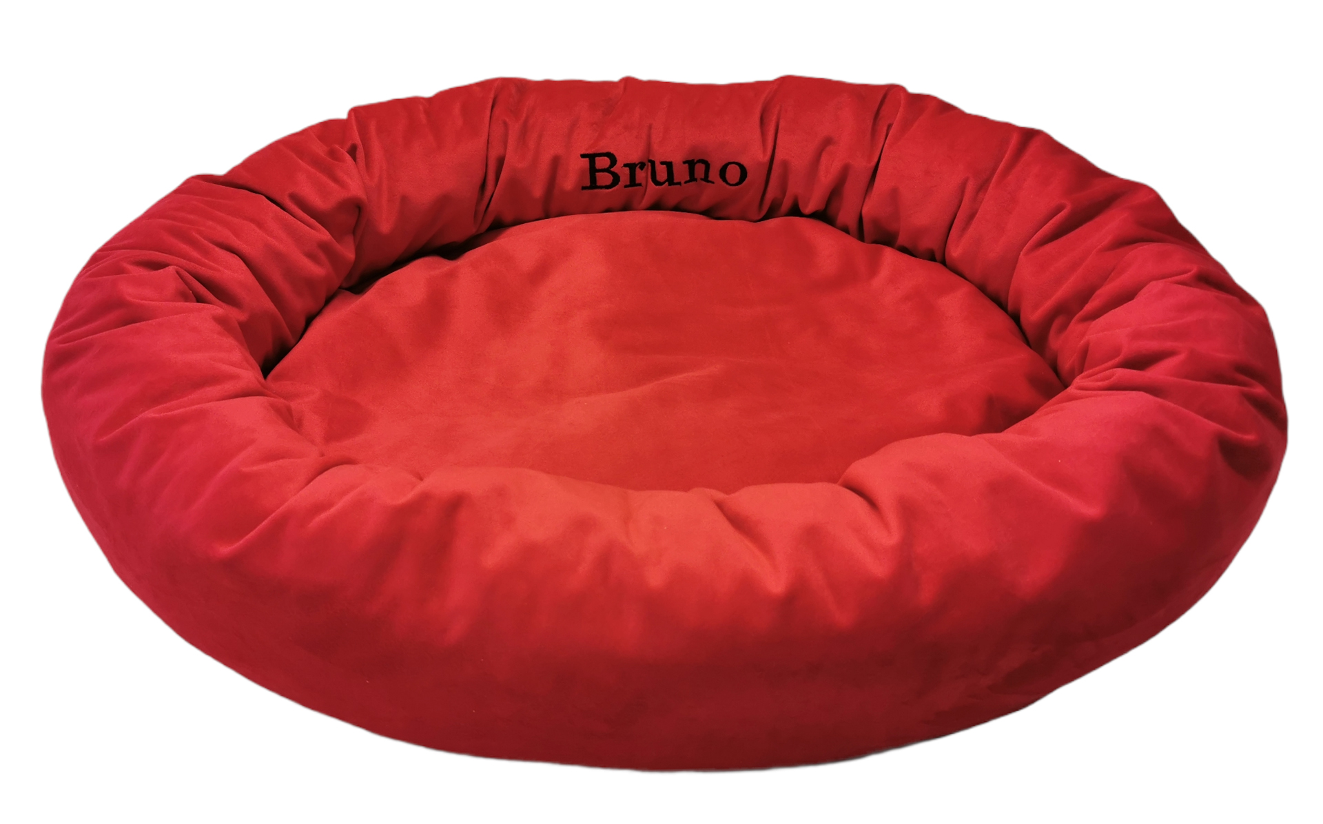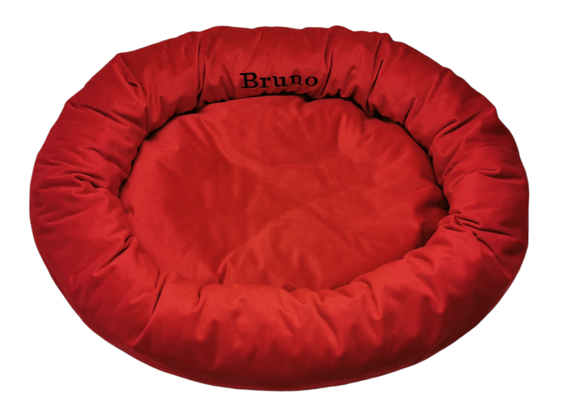 Pătuț catifea brodat pentru căței și pisici, formă ovală